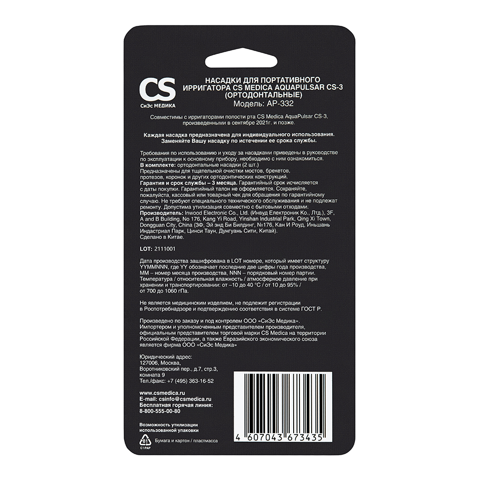 Насадки для портативных ирригаторов CS Medica CS-3-PORTABLE AP-332 (ортодонтальные) 2 шт.