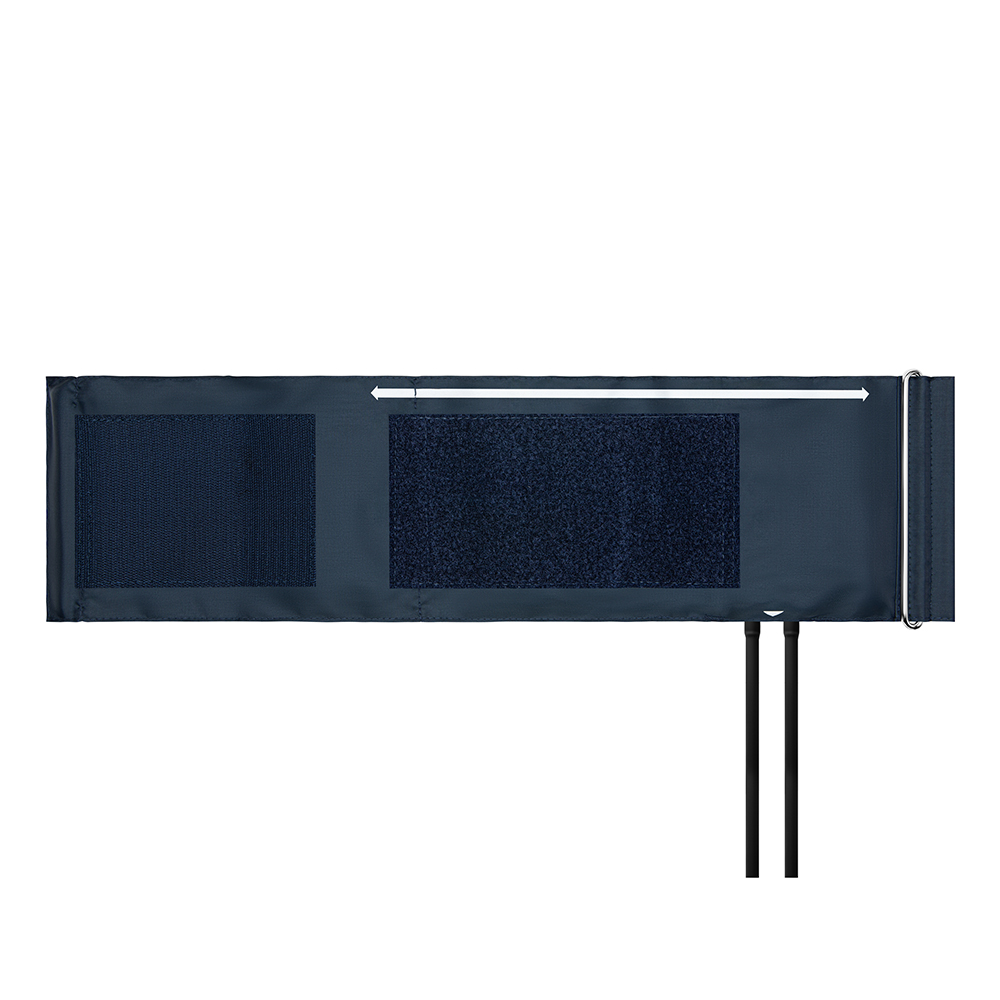 Манжета оснащена фиксирующим кольцом, которое упрощает самостоятельное закрепление манжеты на плече, и двумя воздуховодными трубками.