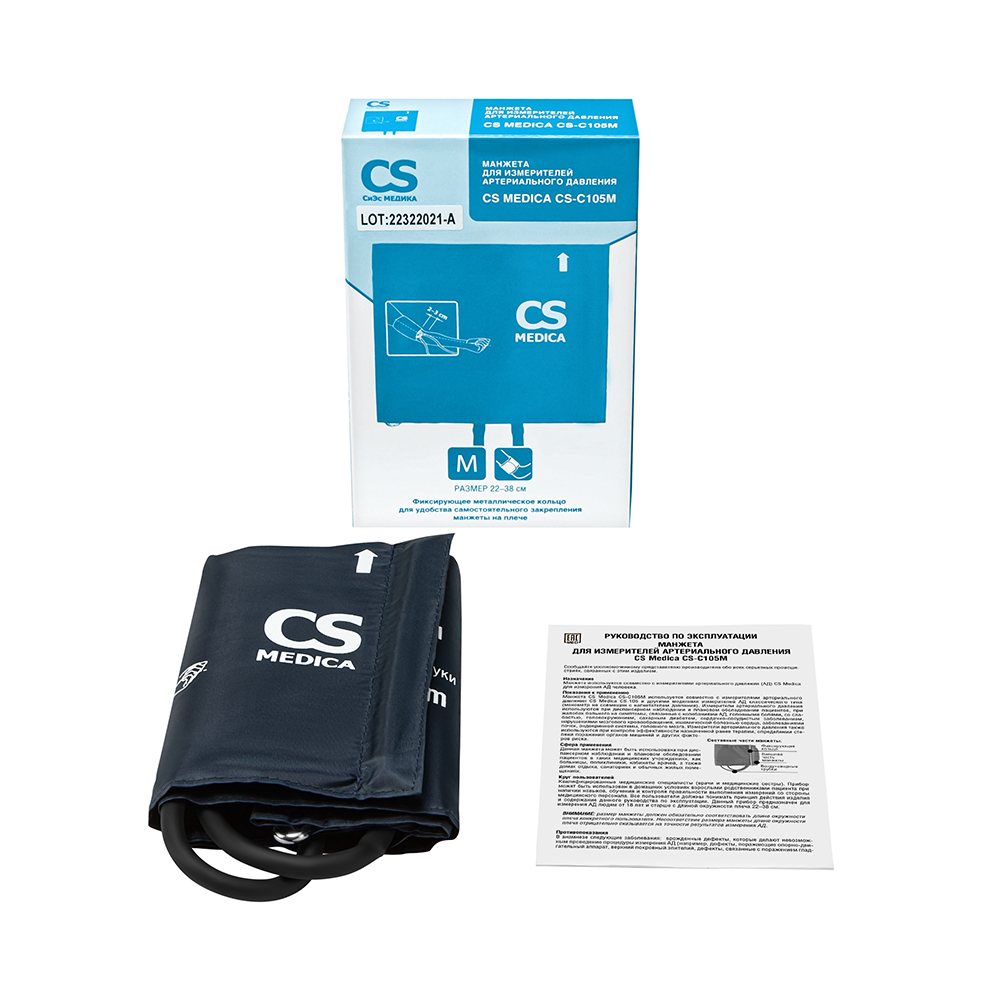Манжета CS-С105M подходит для механических тонометров CS Medica и предназначена для измерения артериального давления людям от 18 лет. Благодаря увеличенному размеру изделие подойдет пользователям с полнотой руки от 22 до 38 см.