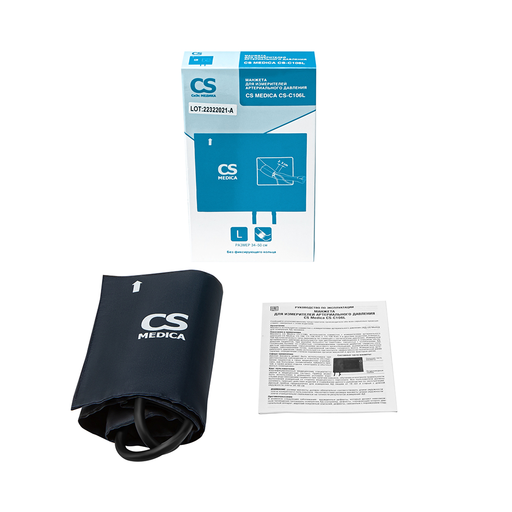 Манжета CS-С106L подходит для механических тонометров CS Medica и предназначена для измерения артериального давления людям от 18 лет. Благодаря увеличенному размеру изделие подойдет пользователям с большой полнотой руки – от 34 до 50 см, или для измерения давления на бедре.