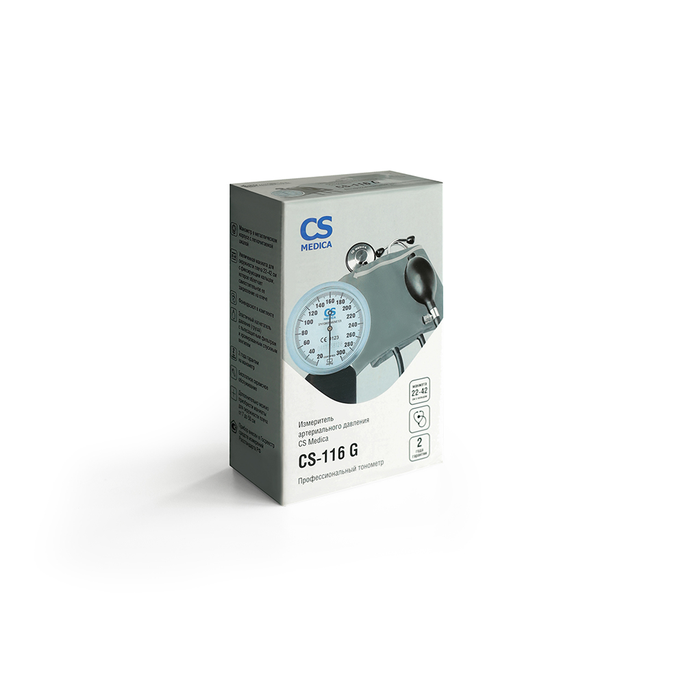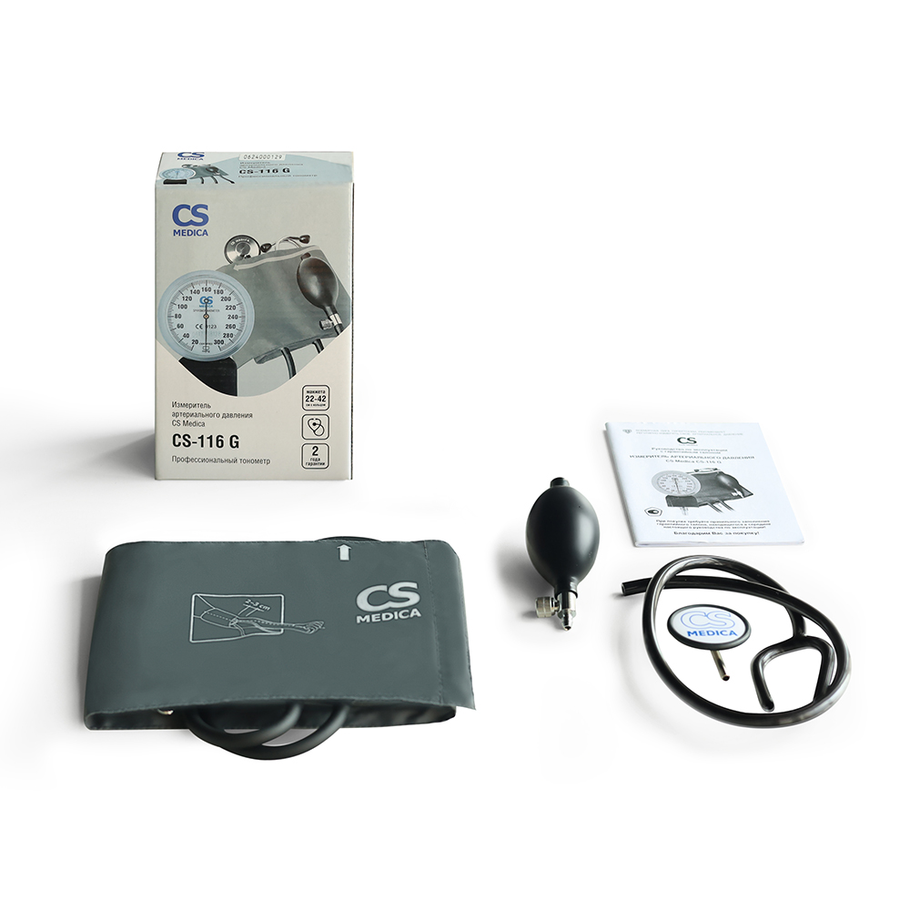CS Medica CS-116 G – профессиональный медицинский прибор c фонендоскопом в комплекте и манжетой с фиксирующим кольцом, что делает процесс измерения давления легким и комфортным.