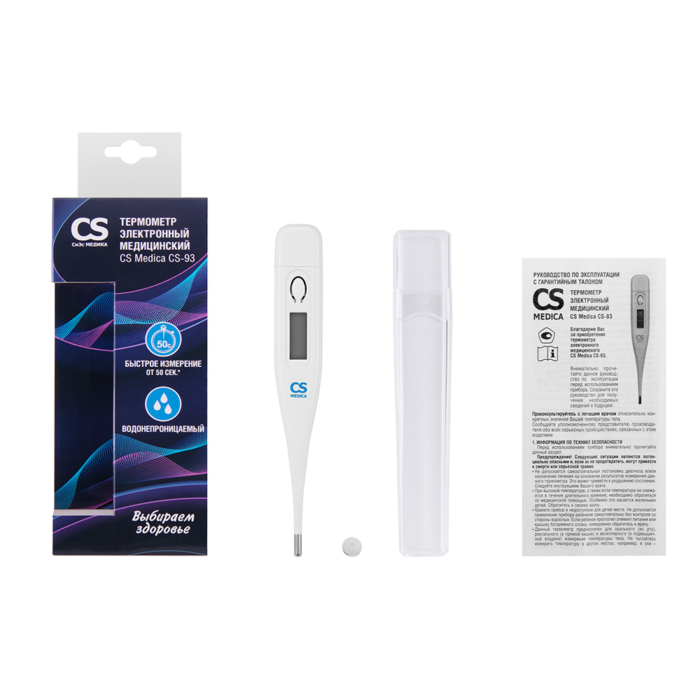 В отличие от ртутного градусника, который требует осторожного обращения, термометр CS-93 безопасен – он не содержит ртути и стекла, которое можно разбить