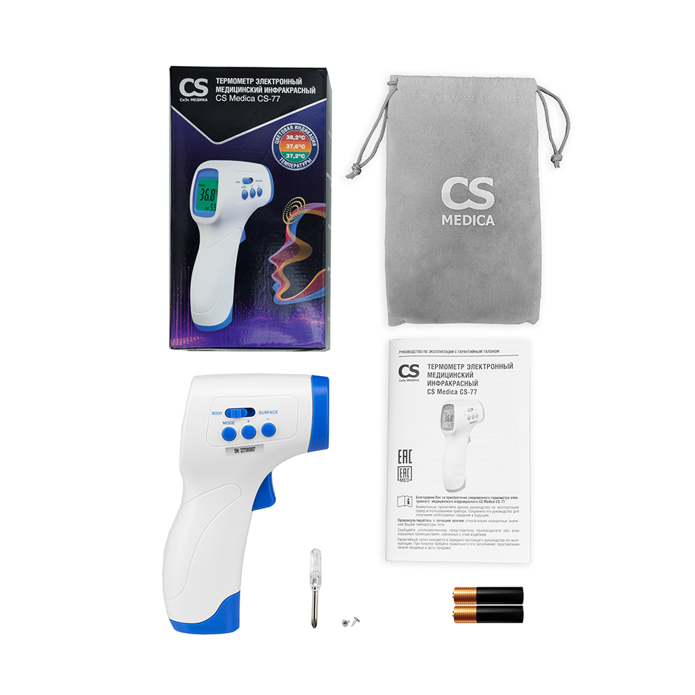 В отличие от ртутного градусника, с которым нужно обращаться осторожно, термометр CS-77 безопасен – он не содержит ртути и стекла, которое можно разбить. Также бесконтактное измерение исключает риск переноса инфекций.Инфракрасный медицинский термометр СS Medica CS-77 – идеальное решение для быстрого и безопасного измерения температуры тела у детей и взрослых.