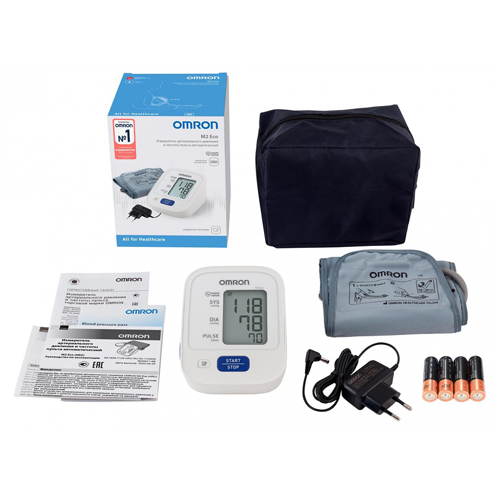 OMRON M2 Eco – автоматический тонометр на плечо в комплектации с веерообразной манжетой и адаптером. Простое и быстрое измерение артериального давления и пульса.