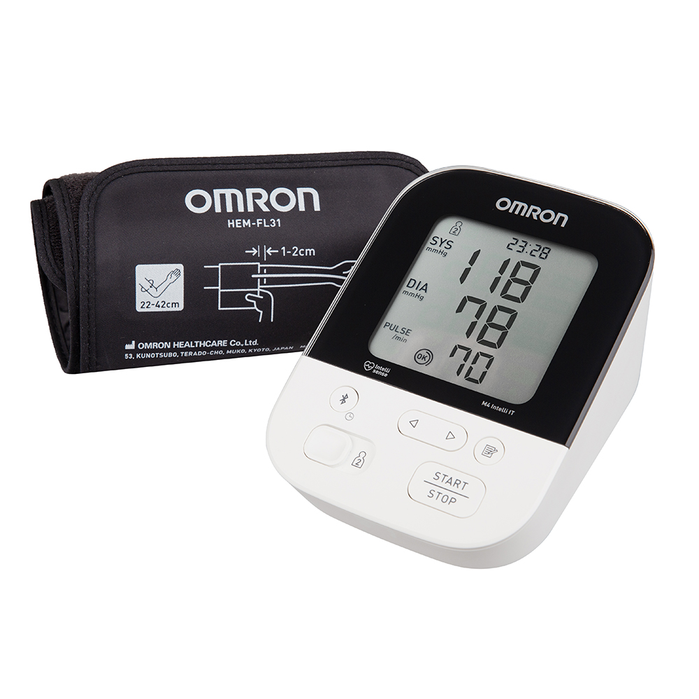 OMRON M4 Intelli IT – автоматический тонометр на плечо в комплектации с умной манжетой Intelli Wrap Cuff и адаптером. Комфортное и быстрое измерение артериального давления и пульса.