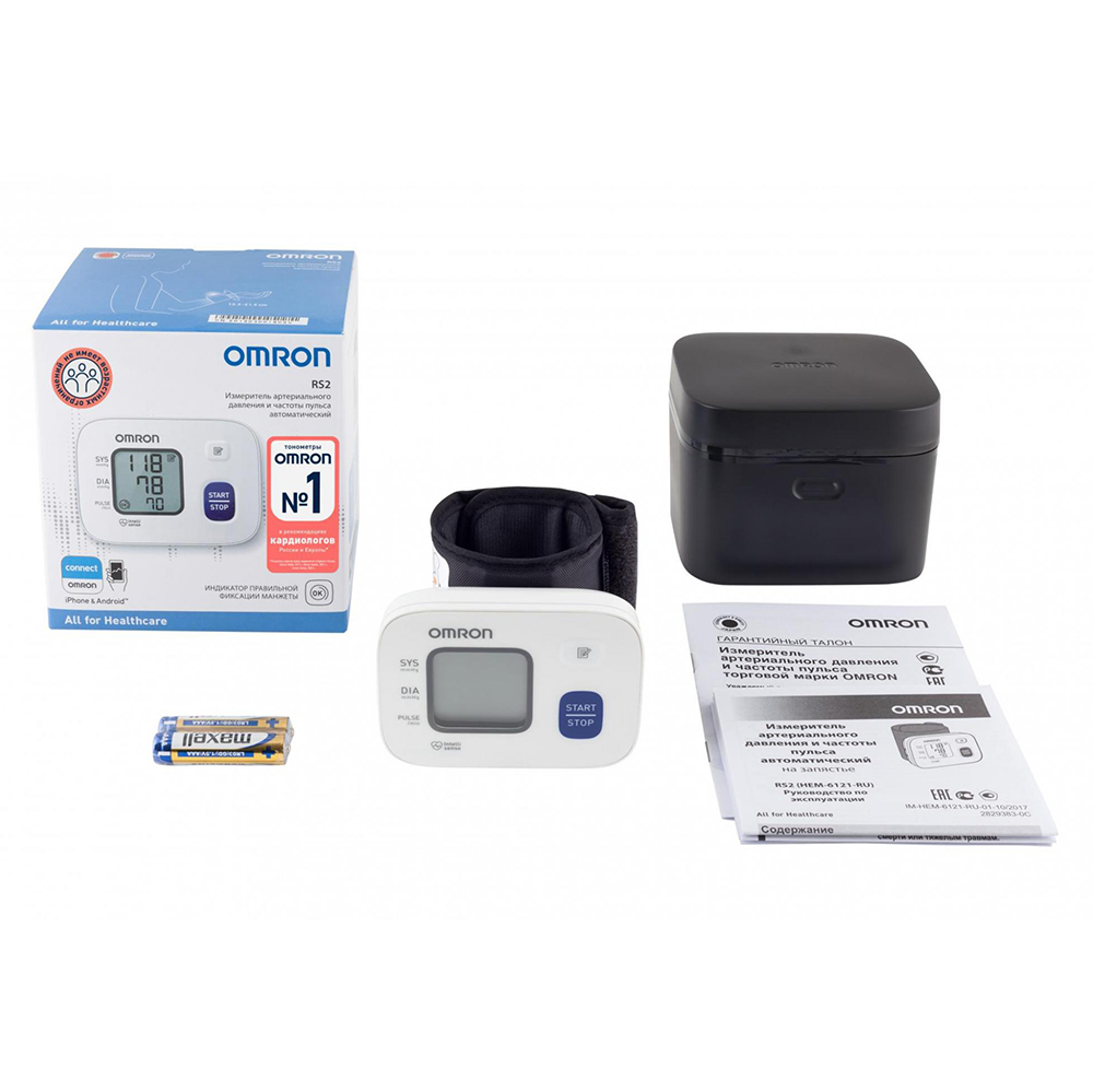 Электронный блок с манжетой, футляр для хранения прибора, комплект элементов питания, руководство по эксплуатации, гарантийный талон<br>